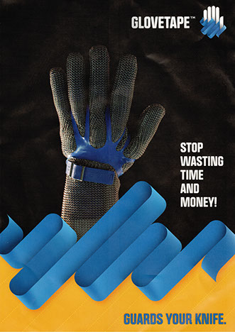 GLOVETAPE can be used with metal mesh, Kevlar, cloth and other industrial safety gloves.